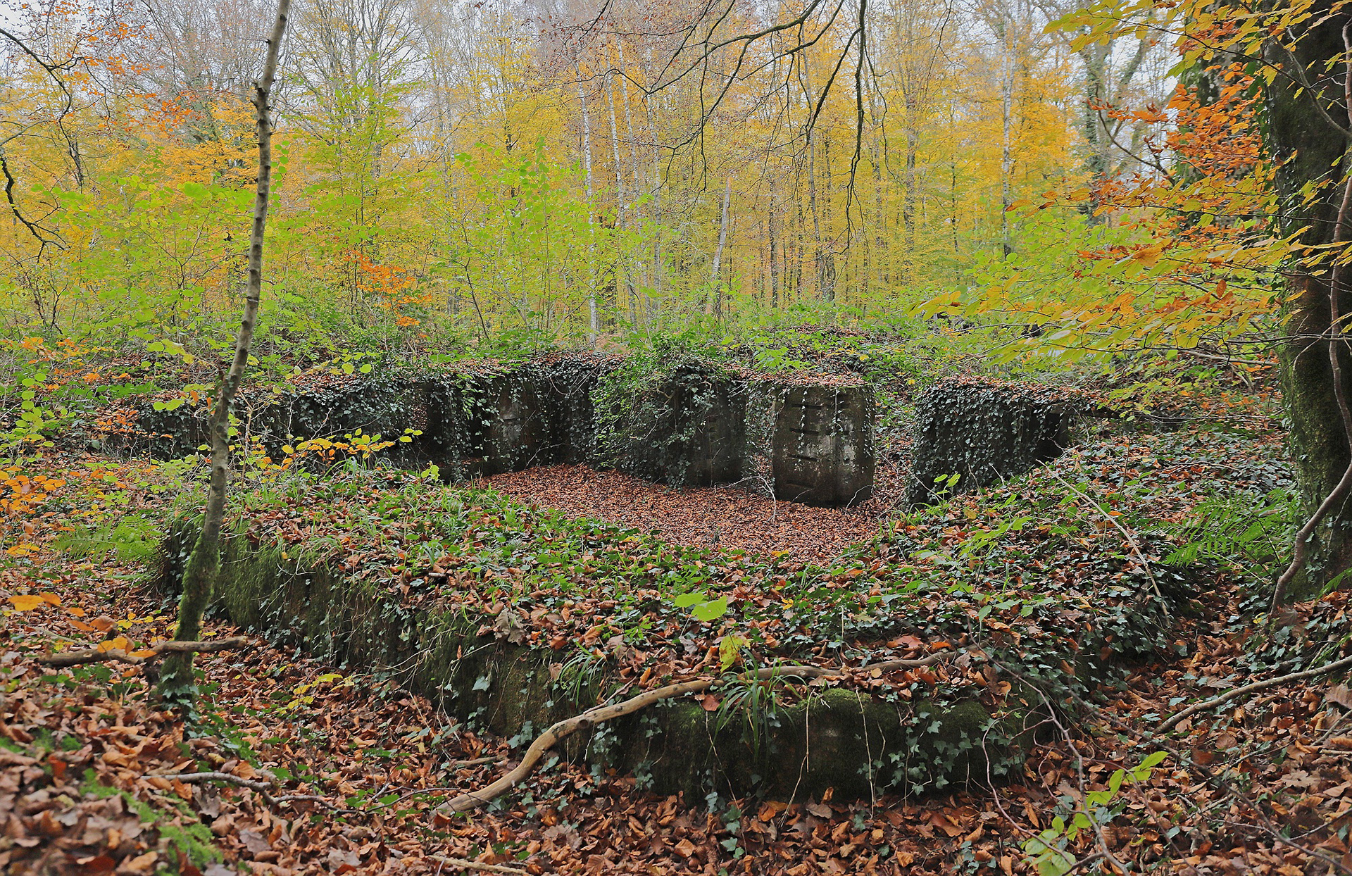 Vestiges dépôt de munition d'un canon lourd. (Cliché W. Degrande)
