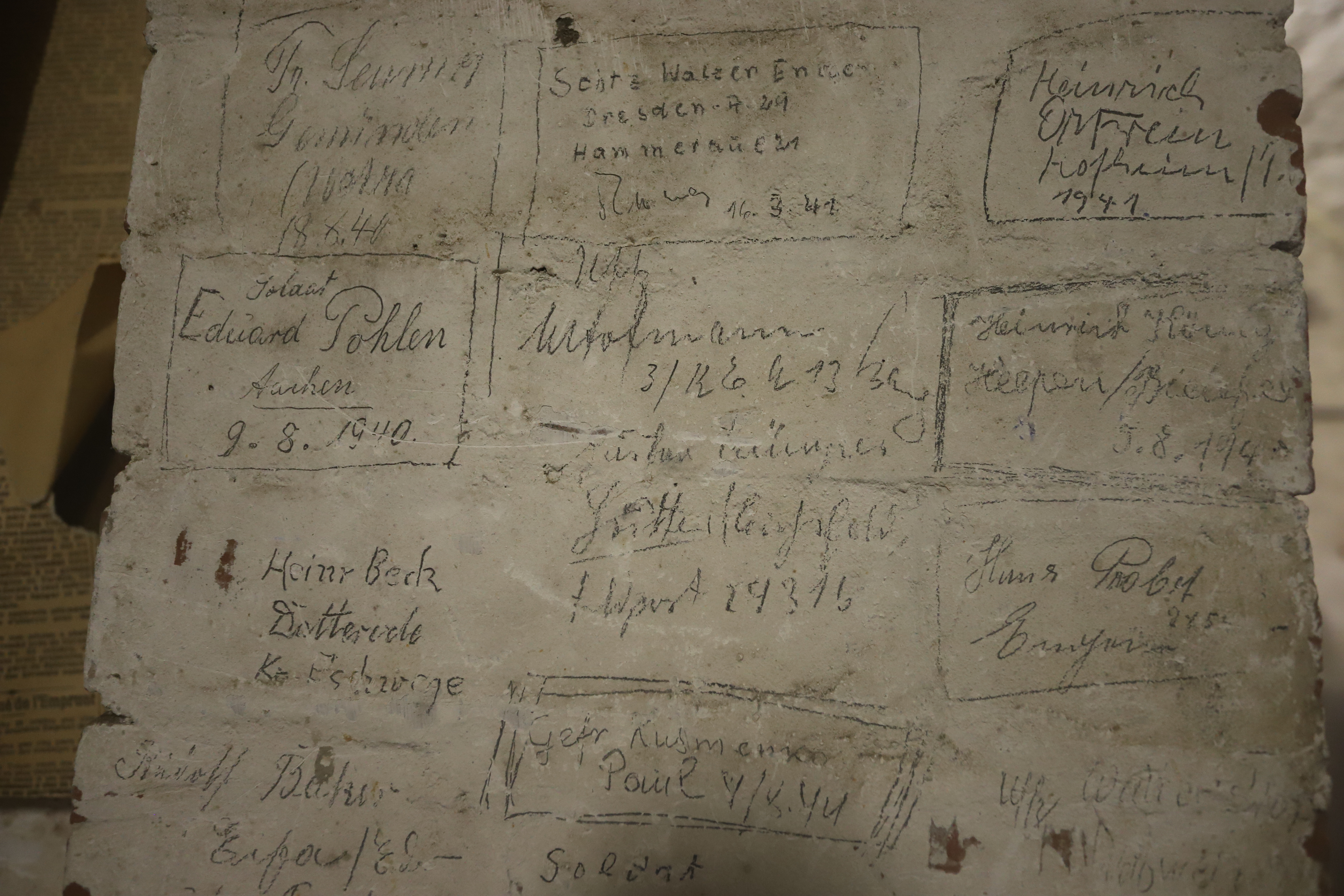 Mur de graffiti datant de la deuxième Guerre Mondiale (Cliché T. van Doorn)